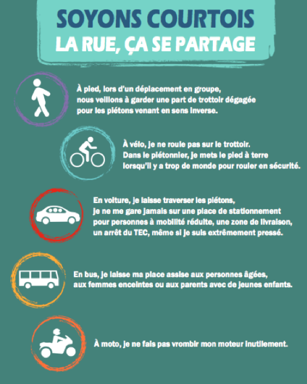 Le Conseil Consultatif Communal des Aînés (CCCA), très impliqué dans le bien vivre ensemble et l'intergénérationnel, a déjà lancé une campagne sur la courtoisie en 2011 et continue depuis à relayer le message par des actions concrètes.