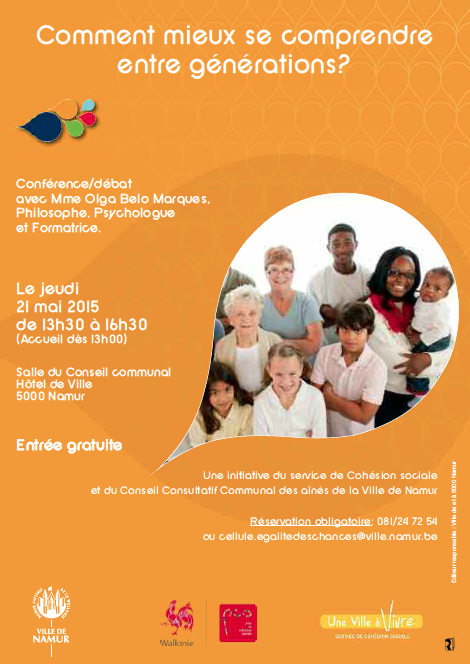 Le Service de Cohésion sociale proposait ce jeudi 21 mai en collaboration avec le Conseil consultatif communal des aînés une conférence sur le thème : "Comment mieux se comprendre entre générations ".